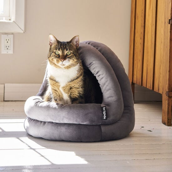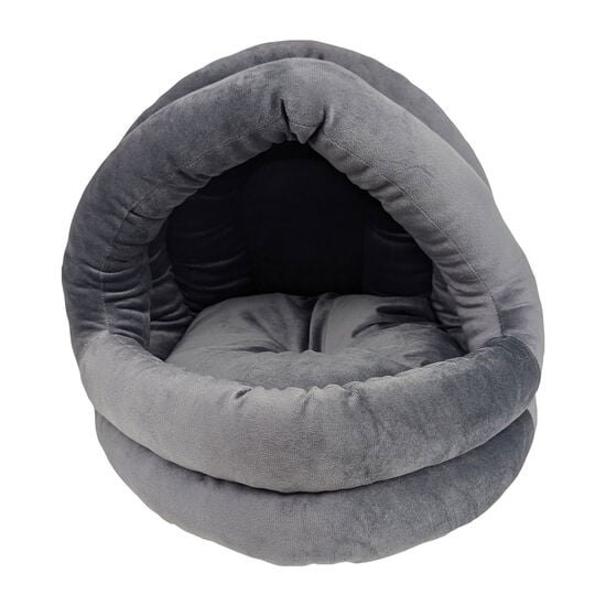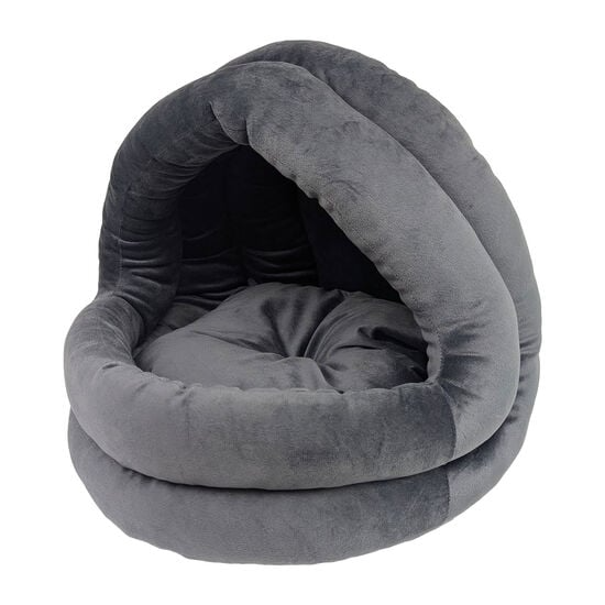 Cachette pour chat et petit chien. Câline votre animal dans un sommeil réconfortant tout en procurant une cachette amusante et sécuritaire. Coussin moelleux pour un maximum de confort et un effet de cocon. La forme ronde favorise la position «enroulée» que les animaux adorent et permet de garder la chaleur du corps. Le coussin est amovible et facilement lavable.